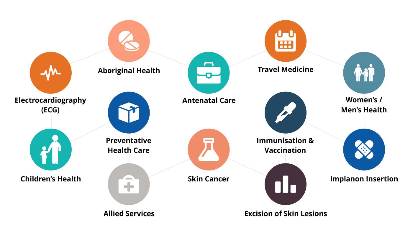To enrich the medical services provided to the community we have incorporated allied health to the practice, including Pathology services, Geriatrician (Aged care specialist), Podiatrist, Dietitian and Acupuncturist.